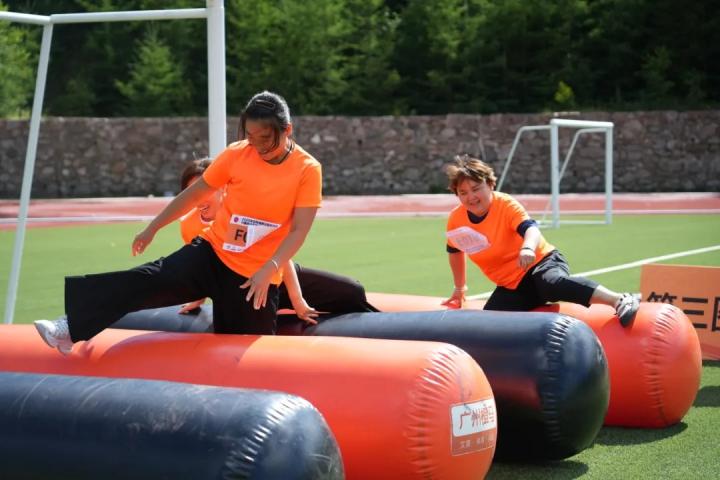 作为赛事核心场地的翠云山空中田径场,以400米国际标准塑胶跑道为竞速基底,创新融合森林陡坡与高山草甸等自然地貌构建专业障碍体系。选手在赛场上激烈角逐,风车矩阵与连绵白桦林共舞成诗。这场勇气试炼吸引了三大组别700余人同台竞技:12-17岁青少年组在专业赛道闪转腾挪尽显新生代锐气;18-50岁成人组于重重障碍中诠释极限突破;亲子接力组更上演暖心画面,绘就家庭体育旅游的典范场景。