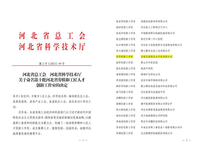 第十批河北省劳模和工匠人才创新工作室名单