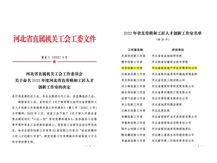 2022年度河北省直劳模和工匠人才创新工作室