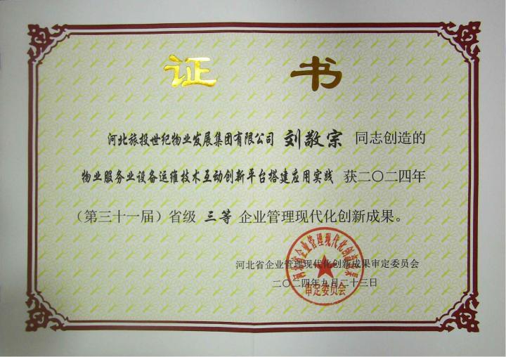 刘敬宗荣获2024年省级三等企业管理现代化创新成果奖